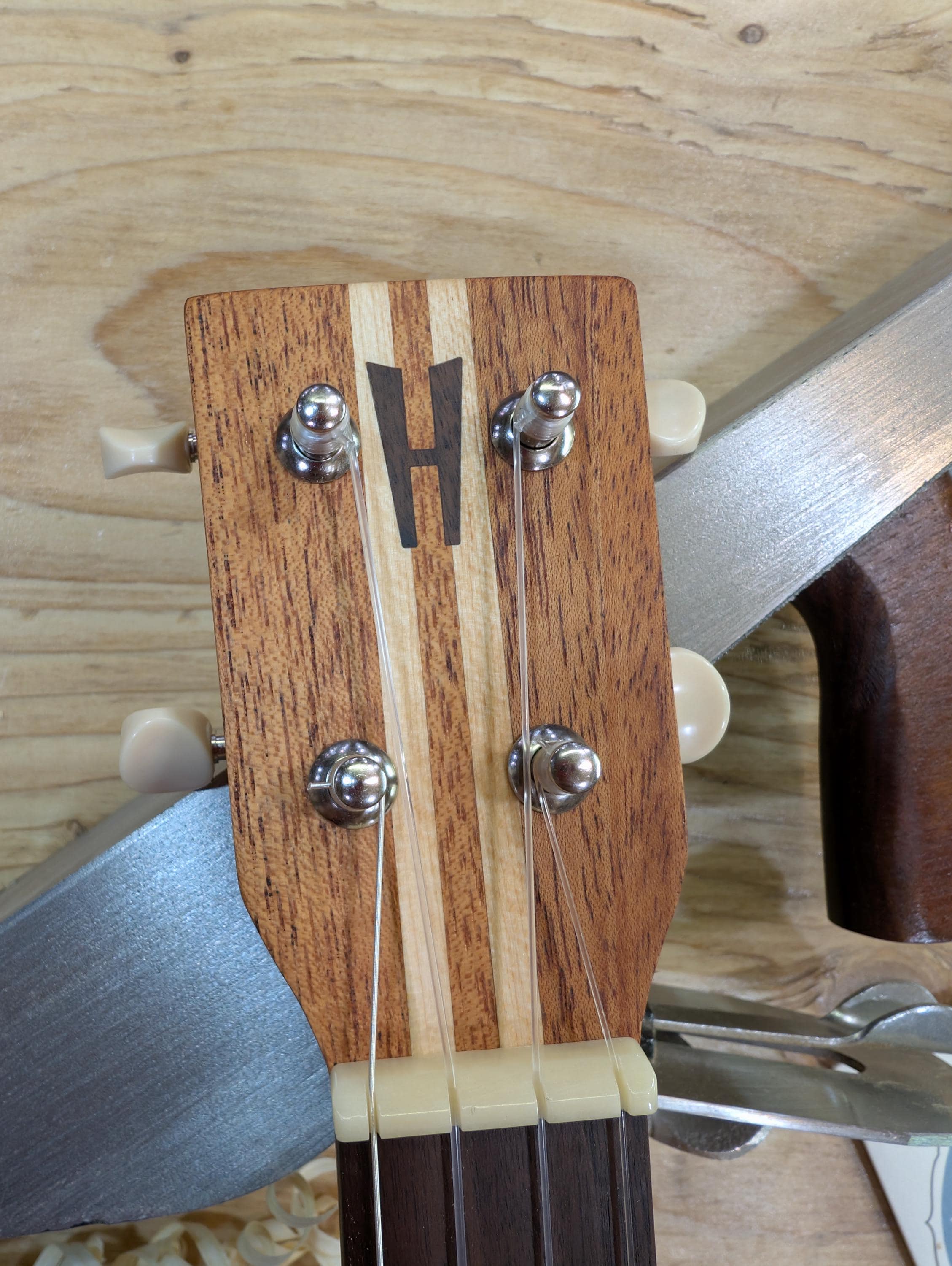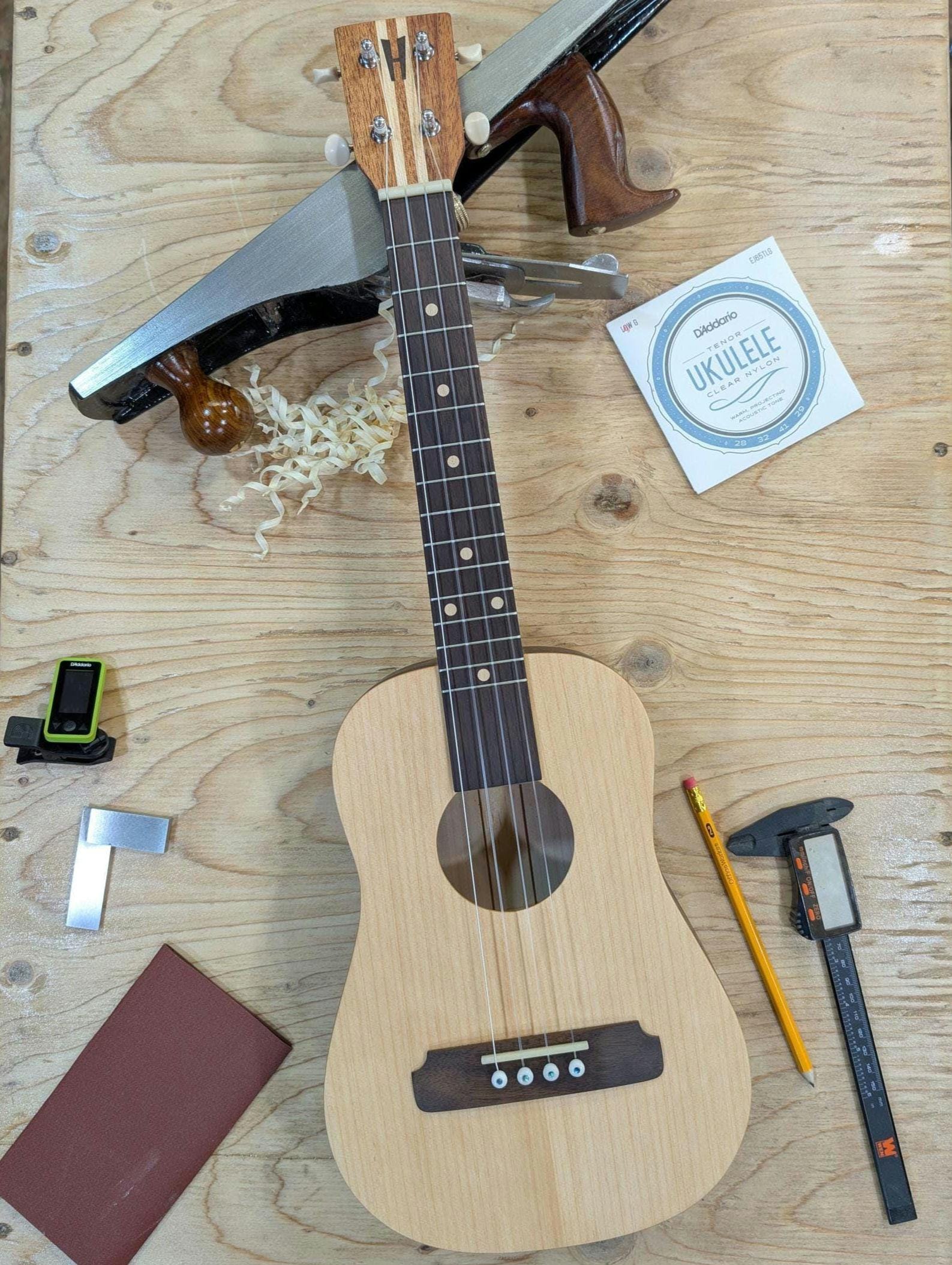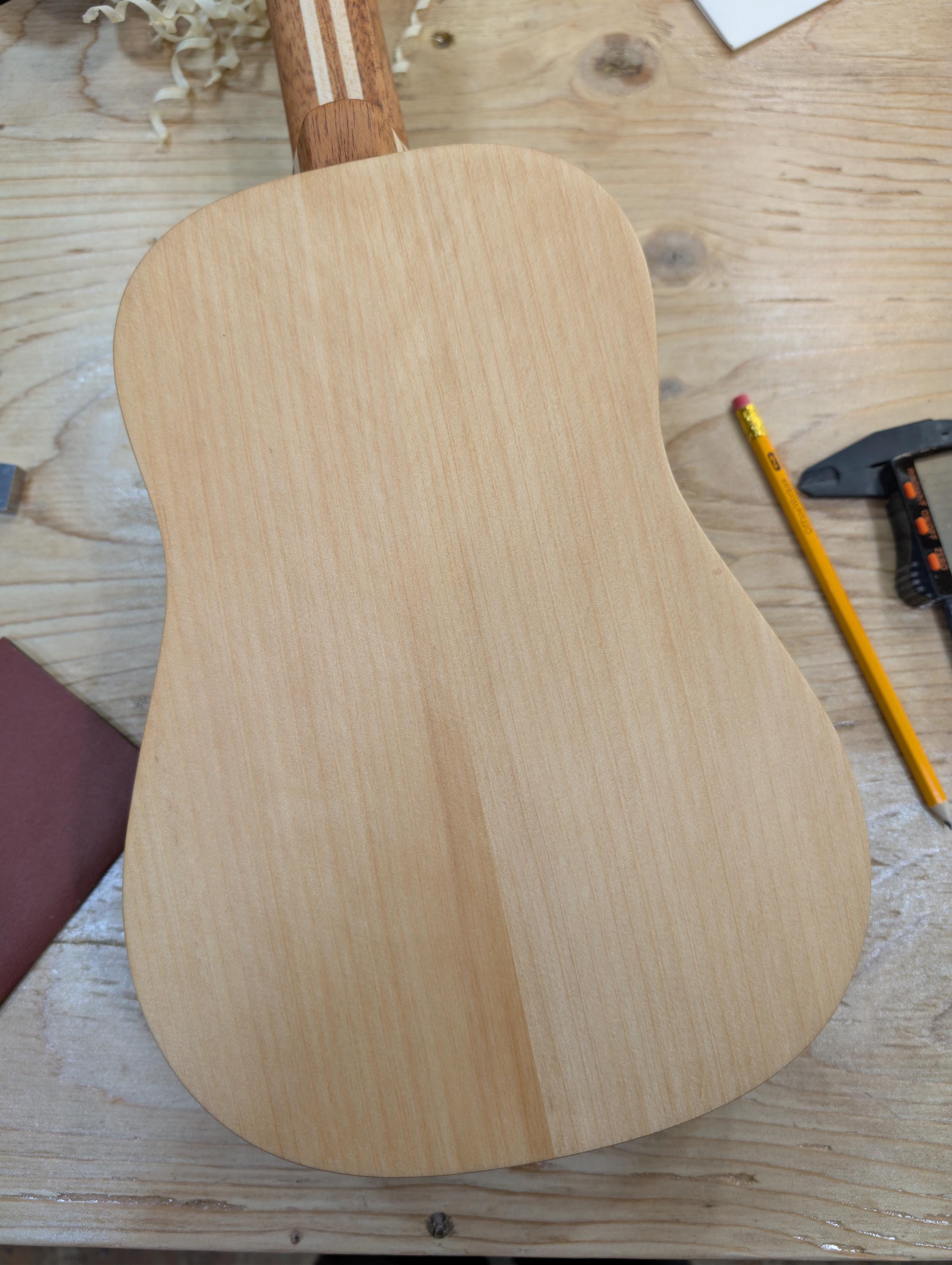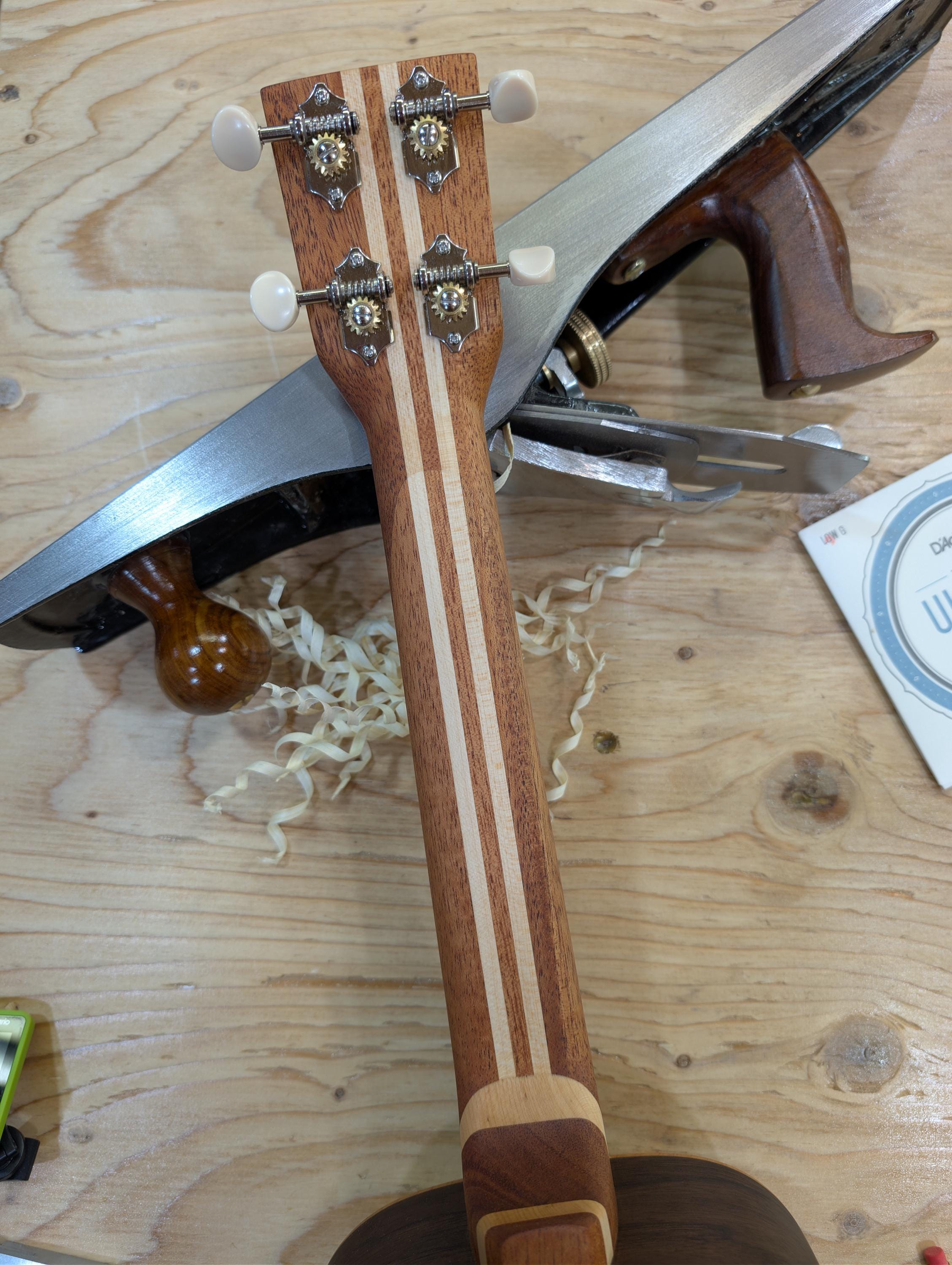 Top wood : Port Orford Cedar Back wood : Port Orford Cedar Sides : Black Walnut Fretboard : Black Walnut with Maple fret dots Bridge : Black Walnut nut width : 1.46" width at 12th fret : 1.71" string spacing at nut : .375" scale length: 17" nut and saddle are unbleached bone bridge pins are bone with inlays golden gate tuning machines D'Addario clear nylon low G strings